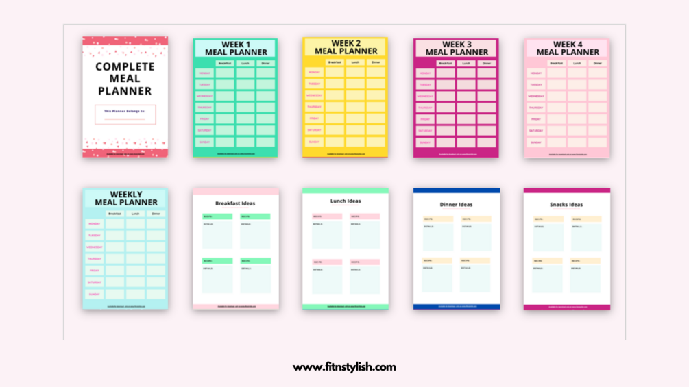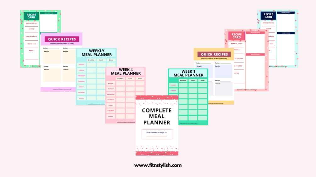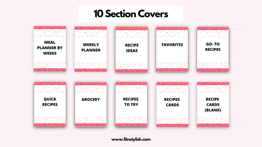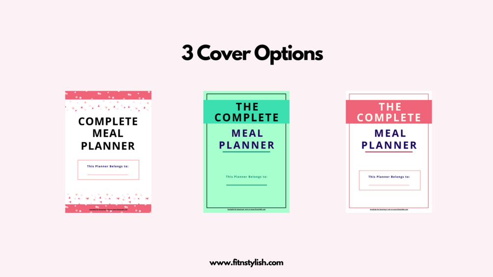 49 Page Meal Planner With 3 Cover Options, 10 Sections Cards & Meal Planning Templates.